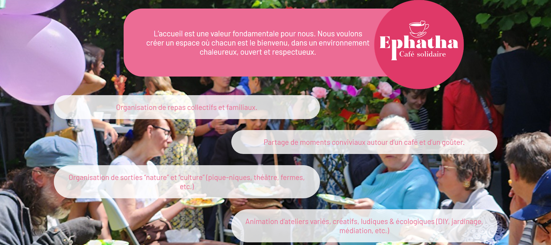Créée en 2004, Ephatha est une association implantée au cœur du quartier Lille-Fives, engagée auprès des personnes les plus isolées et/ou en situation de précarité. Il offre un lieu de partage, d’écoute et de convivialité, à travers différentes activités : un café solidaire, des repas conviviaux, ou encore des sorties collectives.