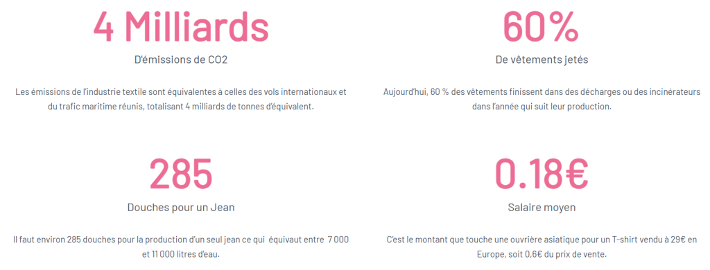 - Une page de sensibilisation à la pollution textile