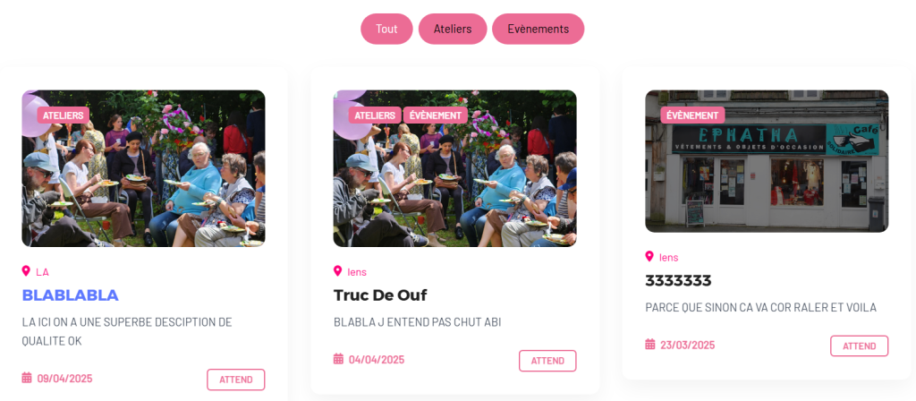 Programmer des événements (repas, sorties, collectes, braderies…) et les faire apparaître automatiquement sur le site,